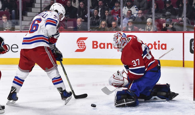 With 4:37 left to play, Hudon was called for an offensive zone trip, a penalty that is quite undesirable considering the moment of the game and the place on the ice. This time the Rangers’ man advantage would strike. With three minutes to play, a shot from the blue line by Tony DeAngelo was not controlled by Niemi. The rebound was clearly kicked in by Kevin Hayes, so the goal was initially called off by the officials. Though the puck was kicked in, the puck hitHayes’ stick after he kicked it, so the goal counted, and it was a one-goal game with three minutes to play.