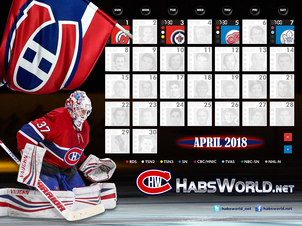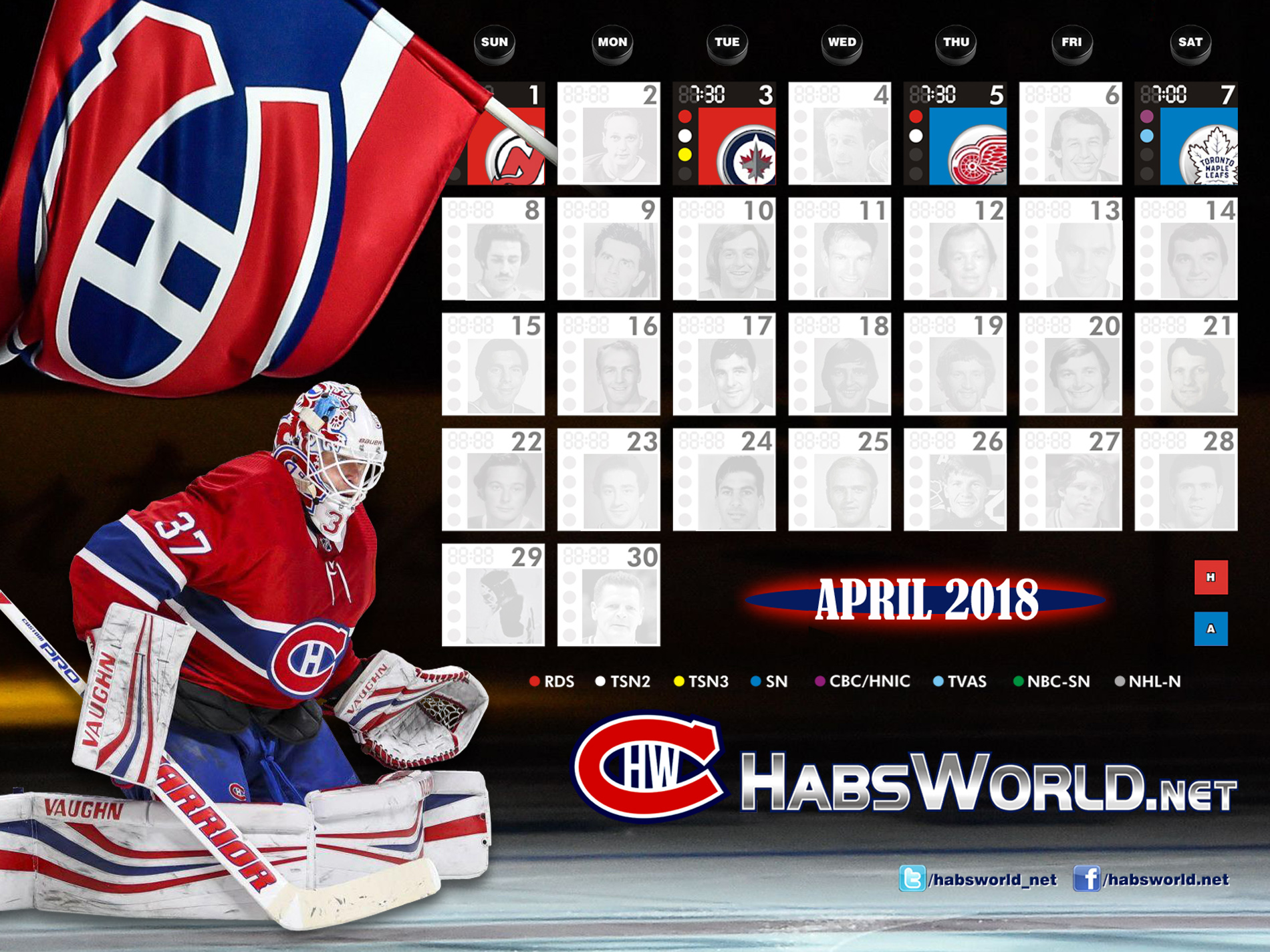 Our April desktop calendar features Antti Niemi, who has rebounded quite well since joining the Habs early on in the season.