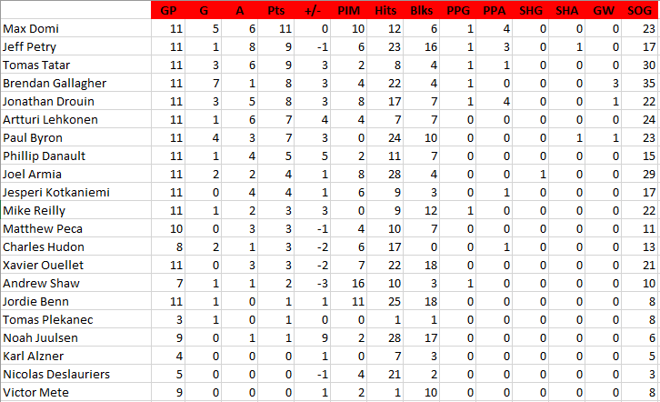 HabsWorld would like to know which three players you think make the grade as HW’s 3 Stars for the month; select your choices from the drop-down boxes and submit your votes. Please vote only once per player and multiple entries will be discarded. Voting ends November 8th.