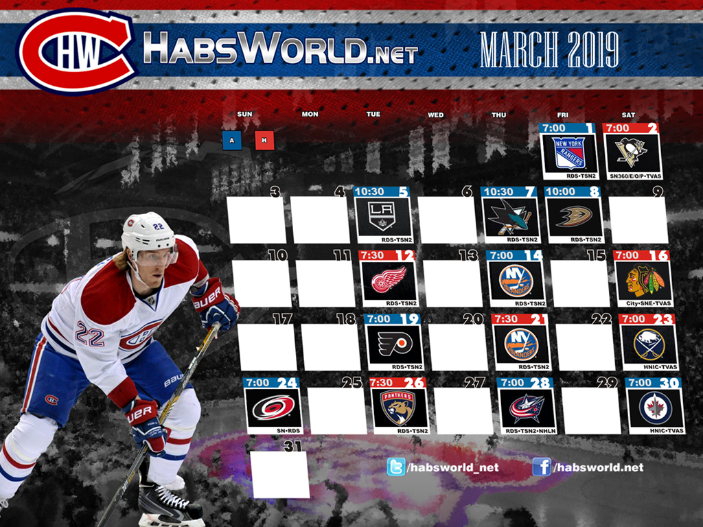 Our March desktop calendar features a familiar face that recently returned to the Habs in winger Dale Weise.