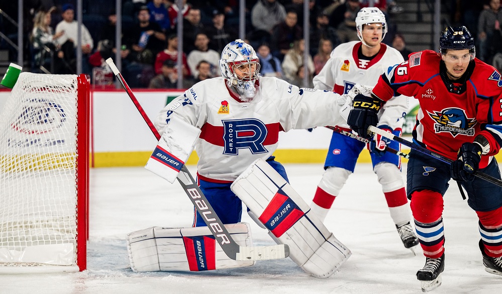 Oct. 19: Laval 2, Springfield 0 – After a tough showing in the home opener, Primeau bounced back with a stellar performance to get Laval in the win column. It took until the third period for the Rocket to get on the board when Gabriel Bourque scored four minutes in and Tory Dello fired home an empty-netter from the defensive zone to seal the victory.
