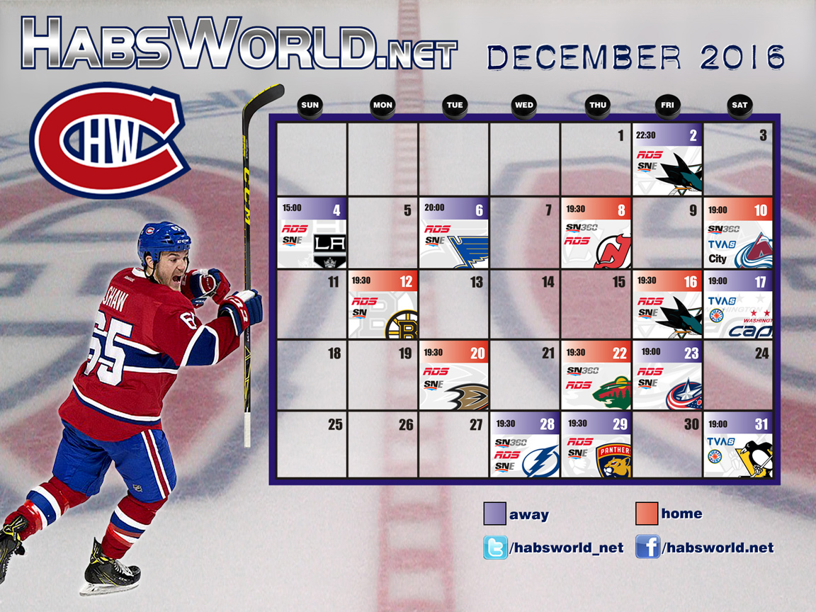 Our December desktop calendar features another newcomer that has had an up-and-down start to the season, Andrew Shaw.