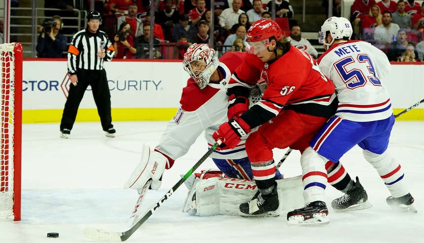 The Hurricanes came out strong for the second period and were quickly sent to a power play after a double faceoff violation by the Habs. The Canes hit the post early, and the momentum continued until Martin Necas tipped a Dougie Hamilton point shot to extend the lead.