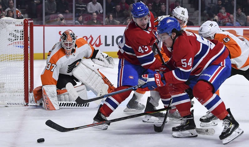 The Flyers silenced the building early in the third. Philadelphia came in 3 on 2 against the Habs, and a series of passes gave Travis Konecny the puck in the high slot. He fired it off the post and in to give the Flyers the lead.