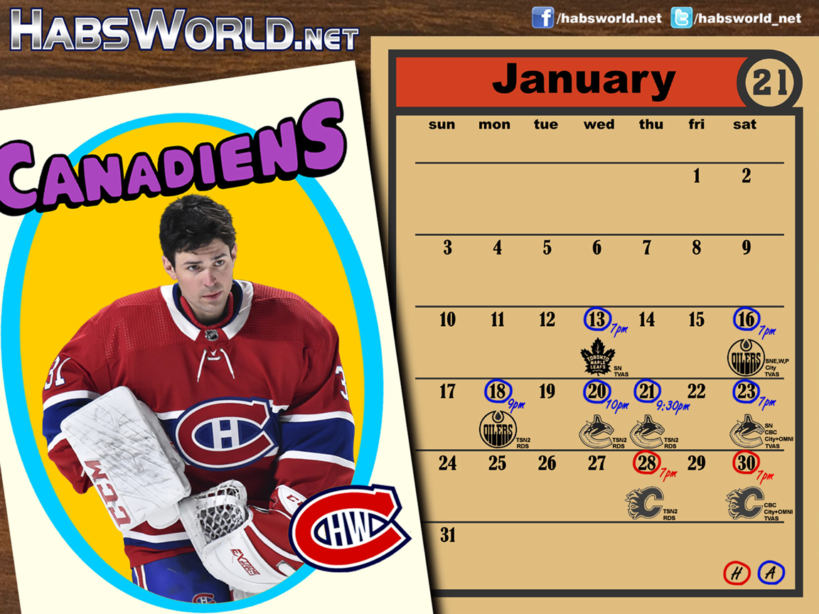 Now that the full schedule has been revealed for the upcoming season (including television coverage), our monthly wallpaper calendars return. Their MVP, Carey Price, gets the spotlight to kick off the year.