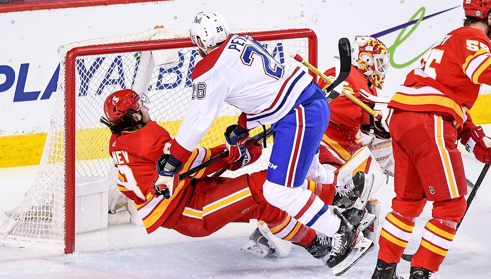 The big moment early on in the third came from a big collision behind Calgary’s net. Unfortunately for the Habs, it was between Perry and Nick Suzuki with the latter missing a bit of time after that.