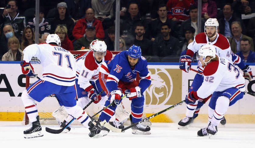 With 10:35 to play in the period, Harris got his stick up and took the game’s first penalty. The Rangers got some zone time but never really threatened Montembeault.