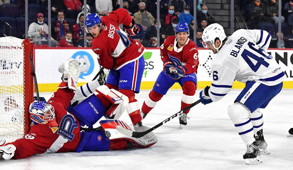 Apr. 27: Marlies 5. Rocket 4 (OT) – Laval squandered a two-goal lead in the first period and found themselves trailing after 40 minutes before Rafael Harvey-Pinard struck again early in the third to at least secure an extra point. However, Kevin Poulin’s tough outing continued in overtime when Joey Anderson picked up the winner.