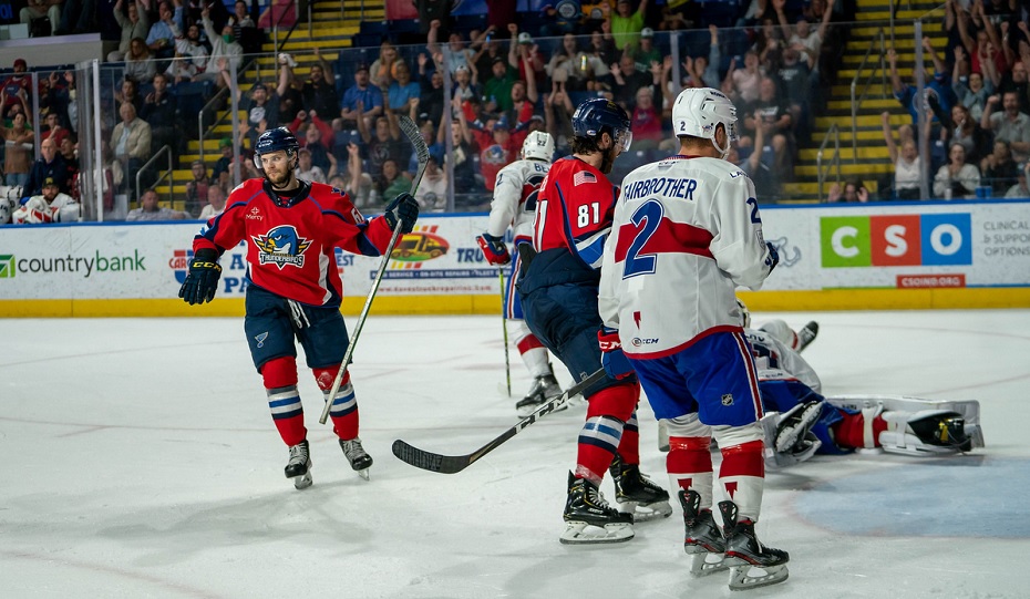 After drawing a penalty early, Gignac took one as he went off for hooking. After going 0/29 in the first six games of the series, Matthew Peca snapped that streak quickly as his wrister beat Primeau eight seconds into the advantage to get the Thunderbirds on the board.