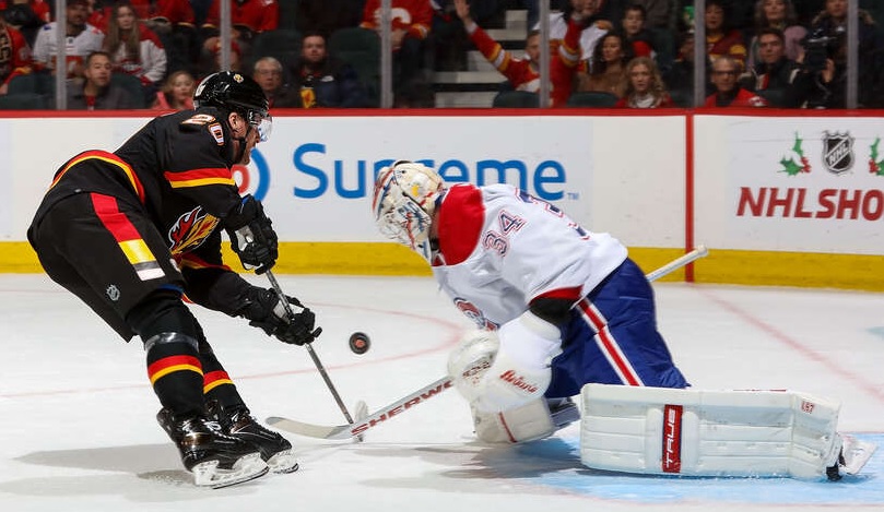 The third period started with the Flames continuing their domination until Harris took a delay of game penalty two minutes into the period. Tyler Toffoli was dangerous on the power play as he hit a post and had two more shots on Allen. The Habs survived the sequence, but the Flames continued to press as shots were 32-14 after five minutes of play in the third period.