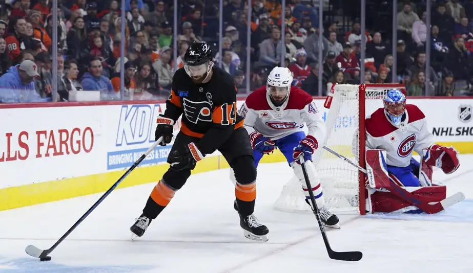 9) Dobes made several key saves in the first half of the third but he faltered down the stretch. Just past the midway mark, he made the initial stop off a redirected point shot but kicked out a perfect rebound to Tyson Foerster who snuck a shot past Dobes’ outstretched pad. Montreal challenged for goalie interference – a risky but understandable move – but the call on the ice stood even with Bobby Brink making contact in the crease on the play. Philadelphia hadn’t scored on the power play in over 30 attempts but they made the Habs pay this time. After Montreal had a Grade-A chance on an odd-man rush, Joel Armia’s centring feed went right to Couturier, springing him on a three-on-one. He kept it and fired the back-breaking shot past Dobes.