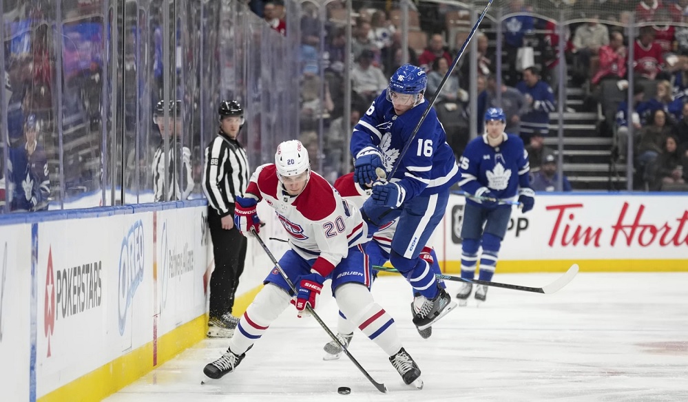 10) Nick Suzuki had a beautiful break-through chance at the start of overtime, but a sprawling Stolarz managed to get his left pad in the way of Suzuki’s shot. And 14 seconds later, it was all over, as Mitch Marner converted a William Nylander pass into a goal to seal a 1-0 overtime victory for Toronto.