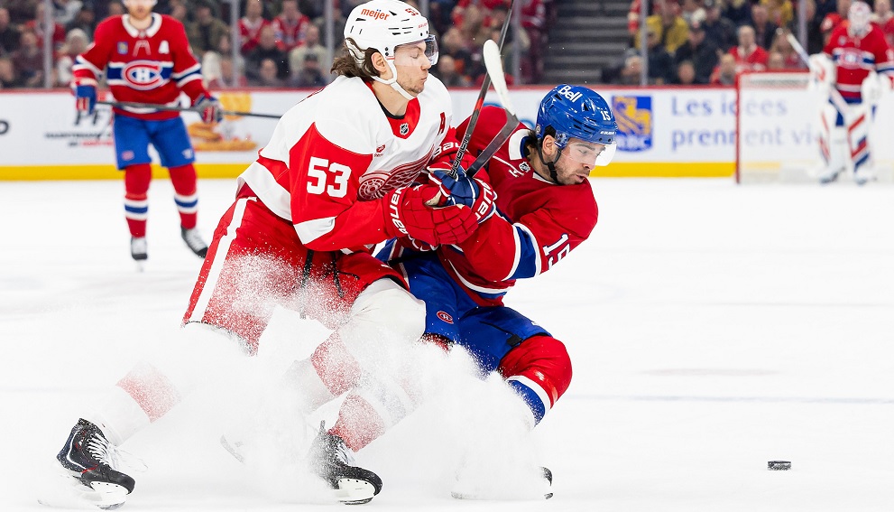 1) With bad starts being an issue lately, I was curious to see how Montreal would come out for this one. Even St. Louis alluded to it pregame, wondering if his team would have its fastball. It turns out it did, just that it was their batting practice fastball. Before the first TV timeout, the Red Wings had double-digit shots while J.T. Compher beat Montembeault but not the goal post. That was a sign of things to come for the rest of the opening frame.