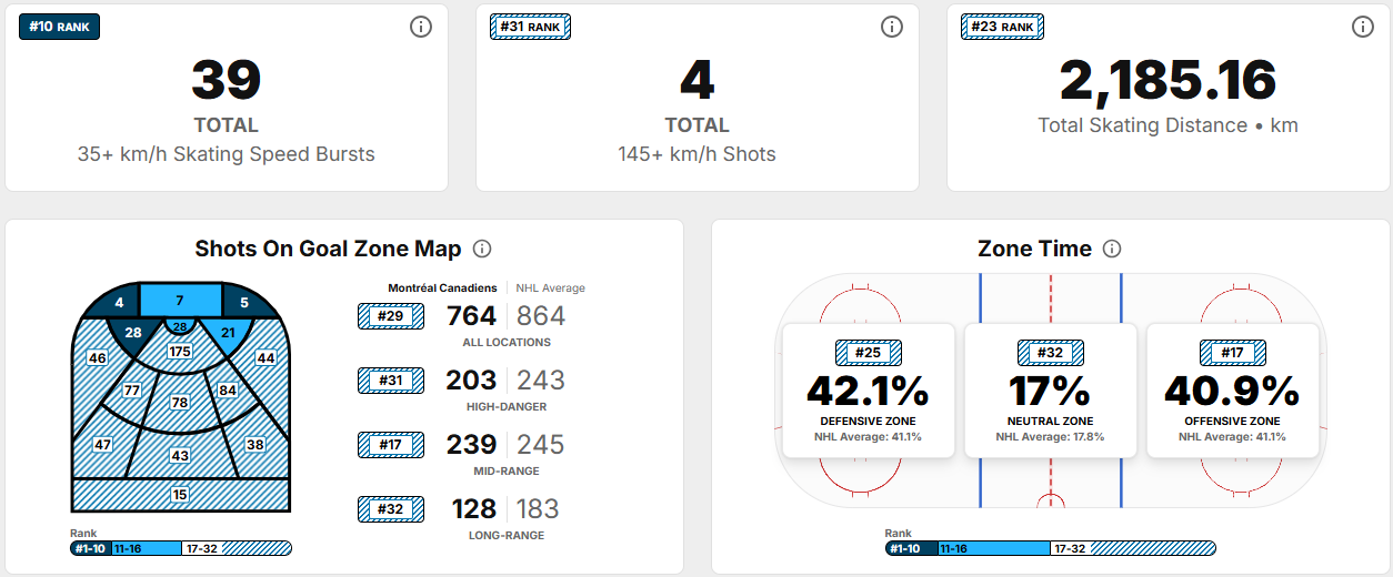 Advanced stats presented by NHL Edge have also improved in many aspects. They have moved up the ranks considerably in offensive zone time and mid-range shots (from 24th and 29th after 25 games, respectively). Although they do still have a high shooting percentage of 12.4%, they have dropped to second in the league behind Dallas.