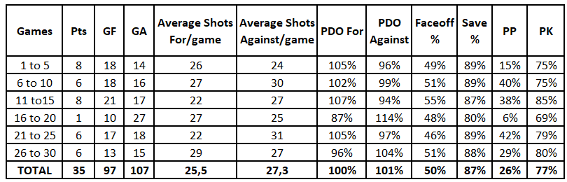 Another five games, another 0.600 points percentage rate. This is great news during a brutal stretch of 13 games in 23 days. Yet, this sequence still has a sour taste. The 6-1 beatdown against Tampa Bay effectively highlighted all the recurring issues the team has had throughout the season, in one single game. Defensive breakdowns were common, both goaltenders underperformed, and early goals against in all three periods of the game killed any momentum that remained.