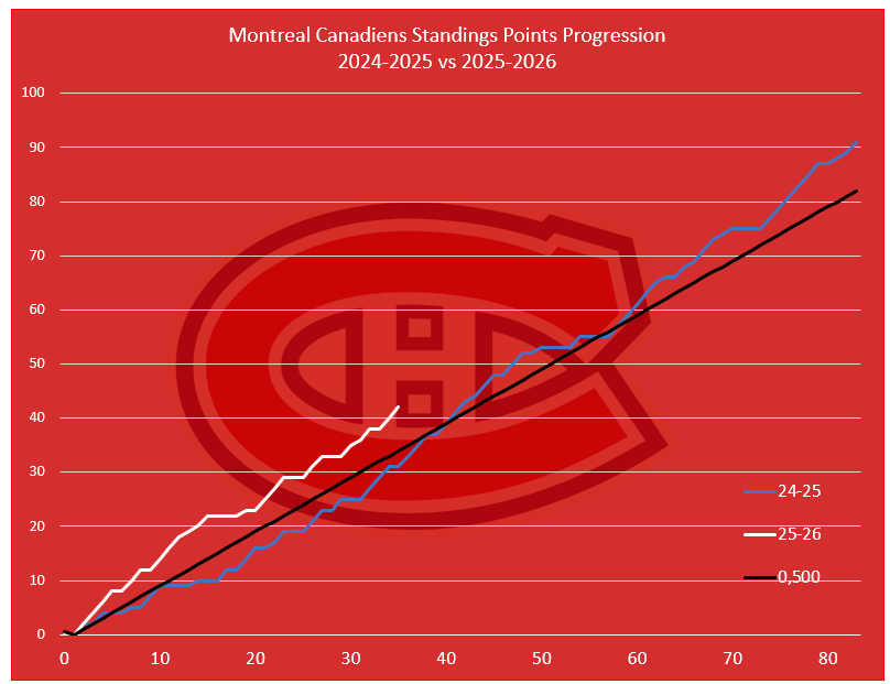 The team continues to keep pace with the other teams at the top of the Atlantic Division and they are nine points ahead of last year after 35 games. The fact that they are still trending towards a 100-point season despite the various issues is quite impressive.